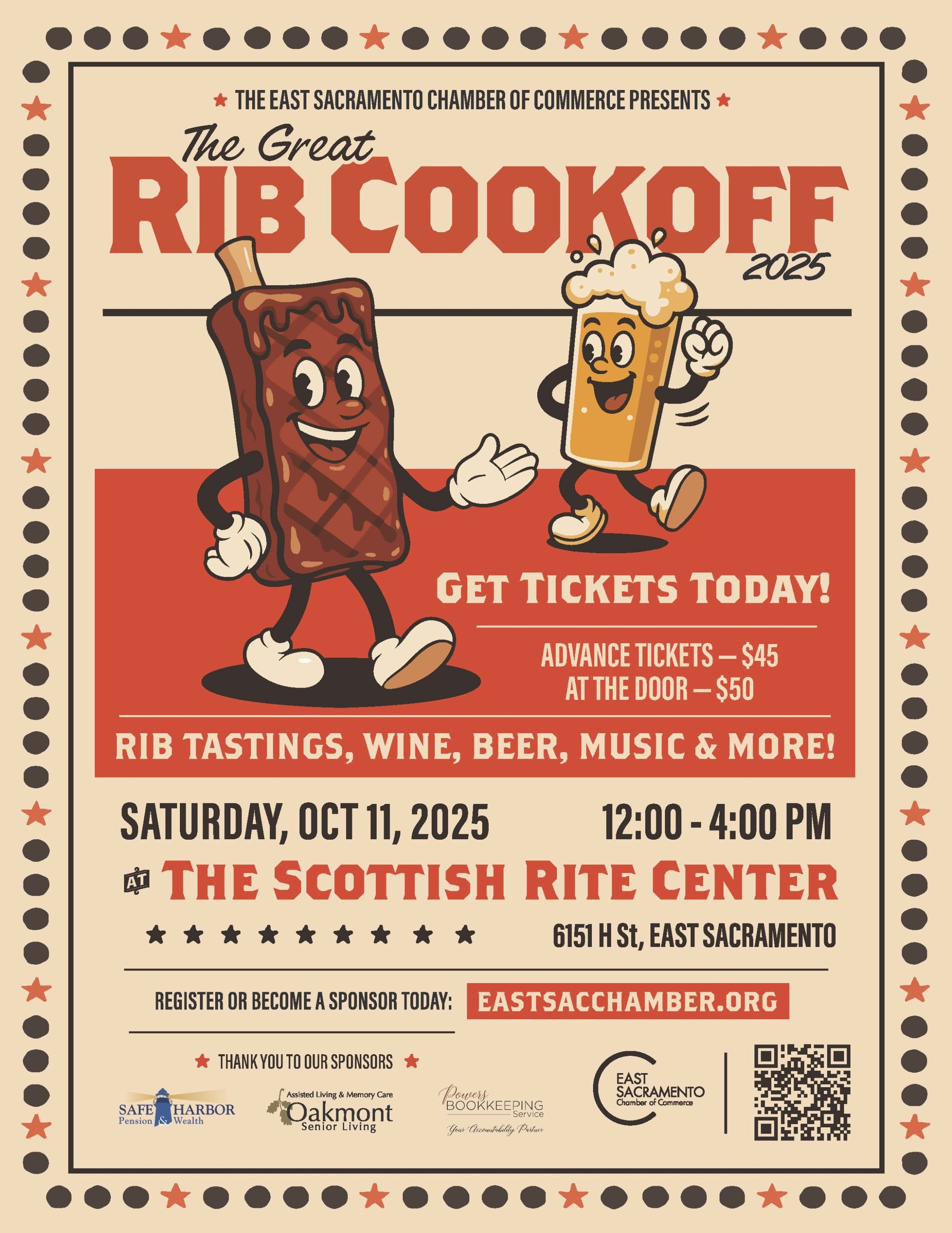 Come join us in East Sacramento at the Scottish Rite Center on a beautiful fall day! We'll have multiple teams making ribs and other food with beer and wine served.