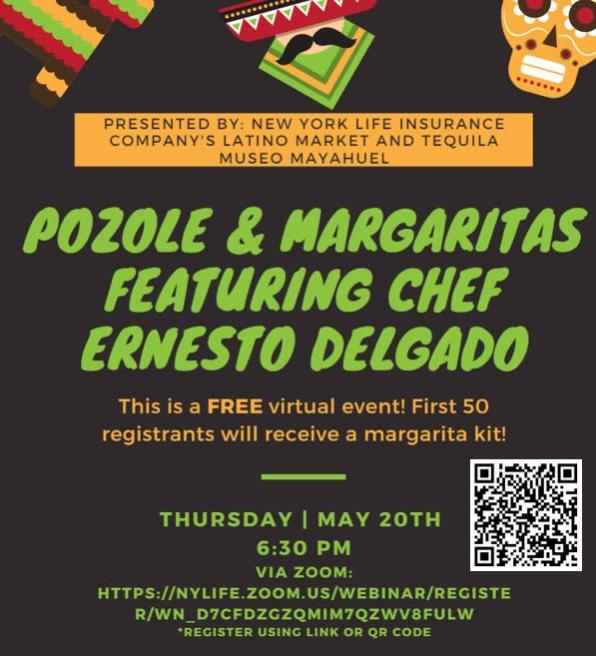 Register in advanced to receive your FREE margarita kit & Pozole recipe card so you can mix it up and cook along side Chef Ernesto: